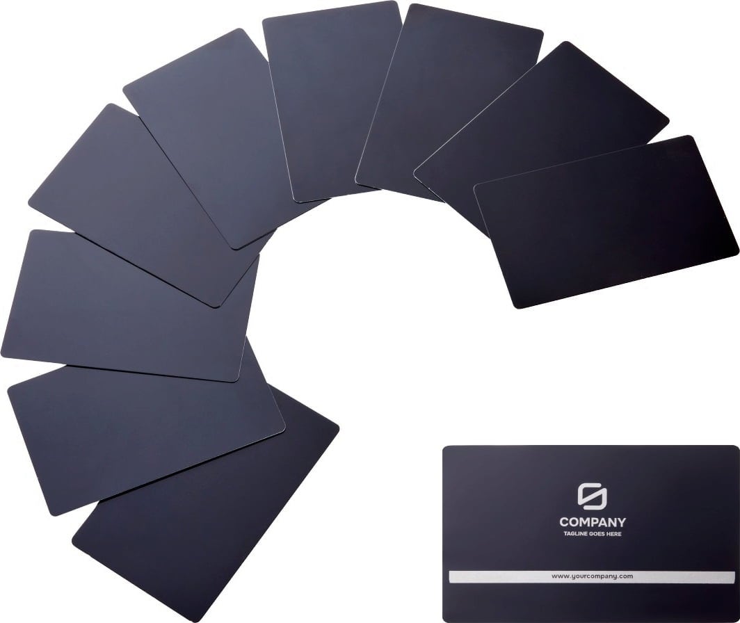Im Lieferumfang befinden sich 10 Stück Aluminium Office Cards (86 x 54 mm).
