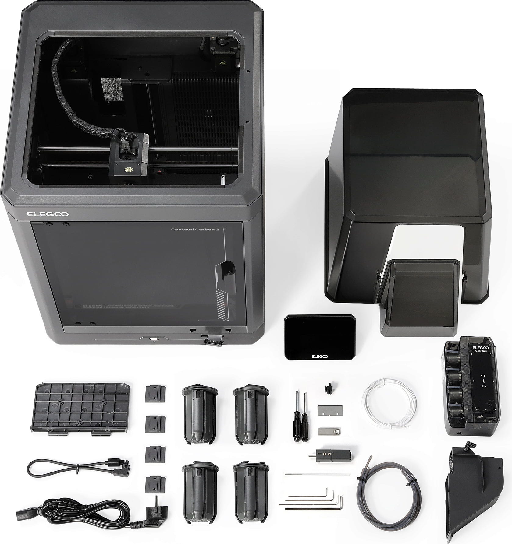 Der Elegoo Centauri Carbon 2 Combo kombiniert Multicolor-Funktionalität, hohe Materialvielfalt und präzise Drucktechnik in einem leistungsstarken 3D-Drucker. Mit intelligenten Systemen für Filamentmanagement, Temperaturkontrolle und Kalibrierung richtet sich der Centauri Carbon 2 an alle, die saubere Ergebnisse, einfache Bedienung und maximale Flexibilität erwarten!