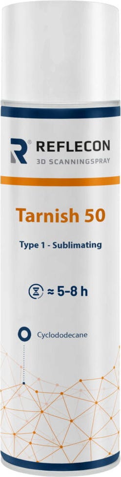 Im Vergleich zu anderen Reflecon Tarnish Scanningsprays bietet Tarnish 50 eine Sublimationszeit von ca. 5–8 Stunden – abhängig von der Objektoberfläche, Umgebungstemperatur und Umgebungsbedingungen. Dadurch eignet es sich besonders für große oder komplexe Bauteile, bei denen längere Scanprozesse notwendig sind.