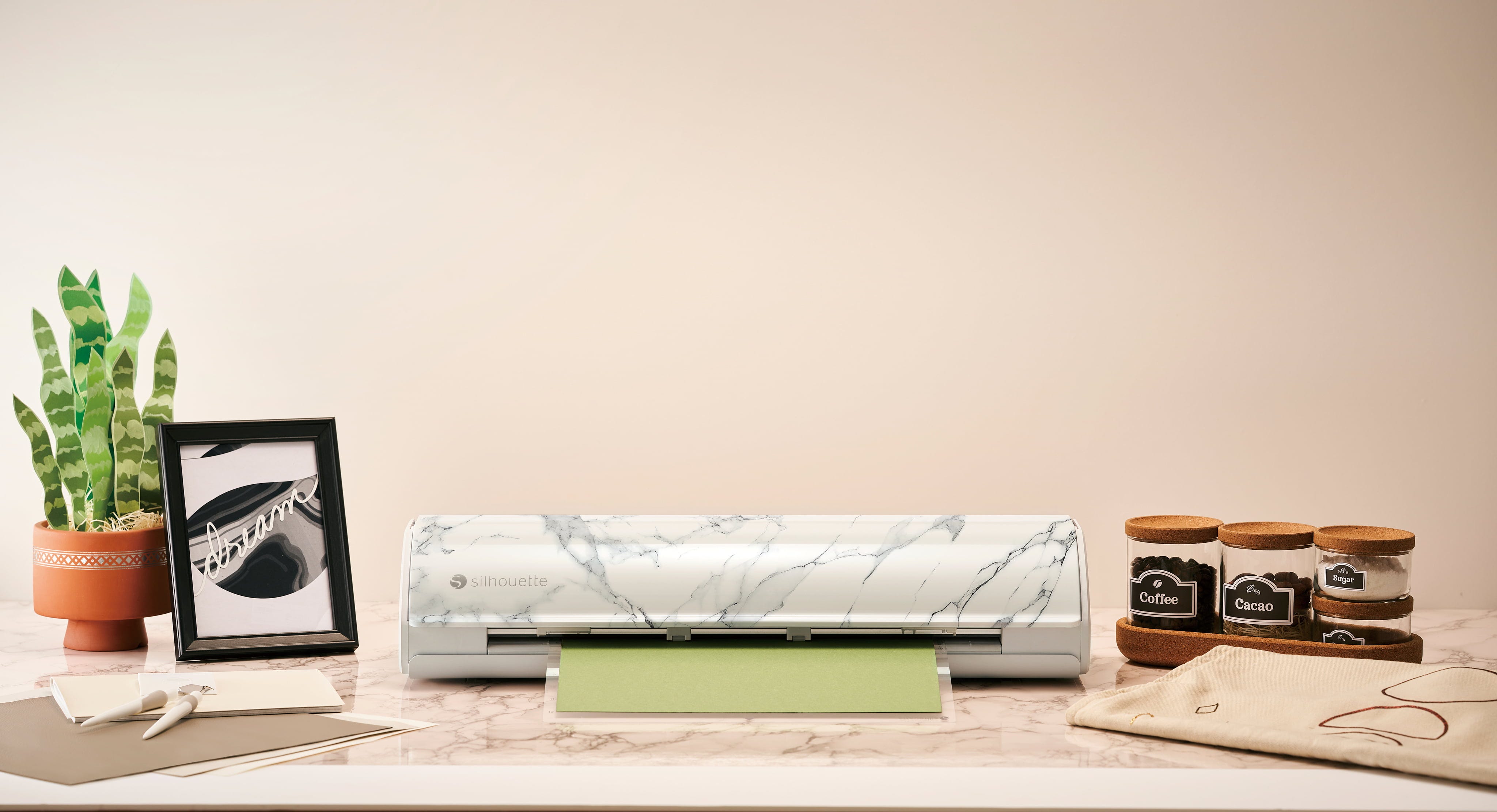 Der vielseitige Schneideplotter kann eine breite Palette von Materialien verarbeiten, darunter Papier, Pappe, Vinyl, Folie und vieles mehr. Um noch mehr Flexibilität zu gewährleisten, kann der kompakte Plotter nun auch 5 Zoll-Materialien aufnehmen, oder auch jene, die etwas größer oder kleiner als die Standardgrößen sind. Er schneidet selbst die filigransten Designs mit absoluter Genauigkeit und haucht deinen Ideen mit Leichtigkeit Leben ein.