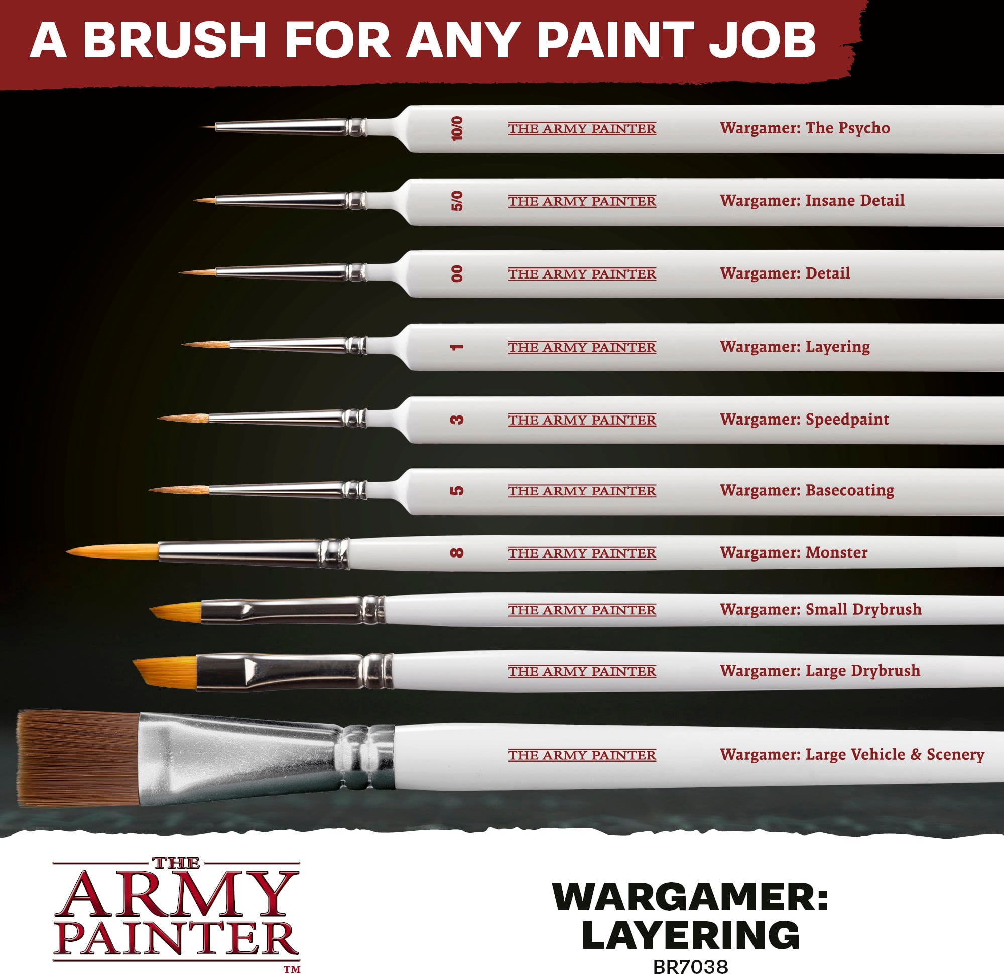 Egal, ob du feine Details hervorheben, größere Flächen schnell bemalen oder in einem Schritt deckende Ergebnisse erzielen möchtest: Mit den Wargamer Brushes erhältst du ein Werkzeug, das Präzision, Komfort und Langlebigkeit in perfekter Balance vereint.